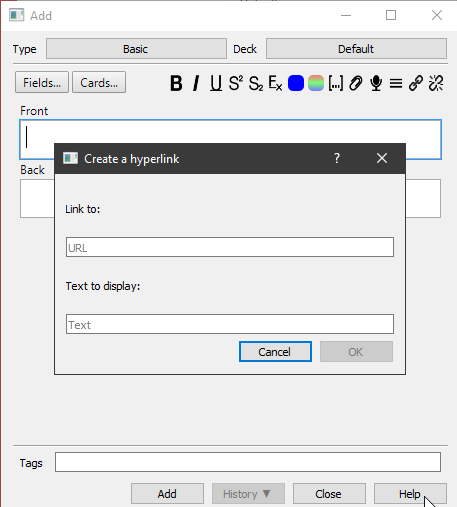 “add hyperlink” works like a magic! I wouldn’t pack much information in this handy way, “Ctrl+Shift+H”, without this addon. This saves my continuous work with Anki!