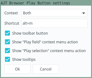 This tiny add-on adds a play button to the Anki Browser’s toolbar. When clicked, it looks for [sound:…]-tags on the selected note and plays them in the order of their appearance on the note’s fields. If there is selected text, the action is limited to the sound tags that appear only in the selected text. If you select Play field in the context menu, the action is limited to the currently selected field. Each field that contains audio has a play button next to its name. Pressing on the button plays all audio files in the field. Audio can be directly played with a shortcut: alt + m. A demo can be viewed on .
