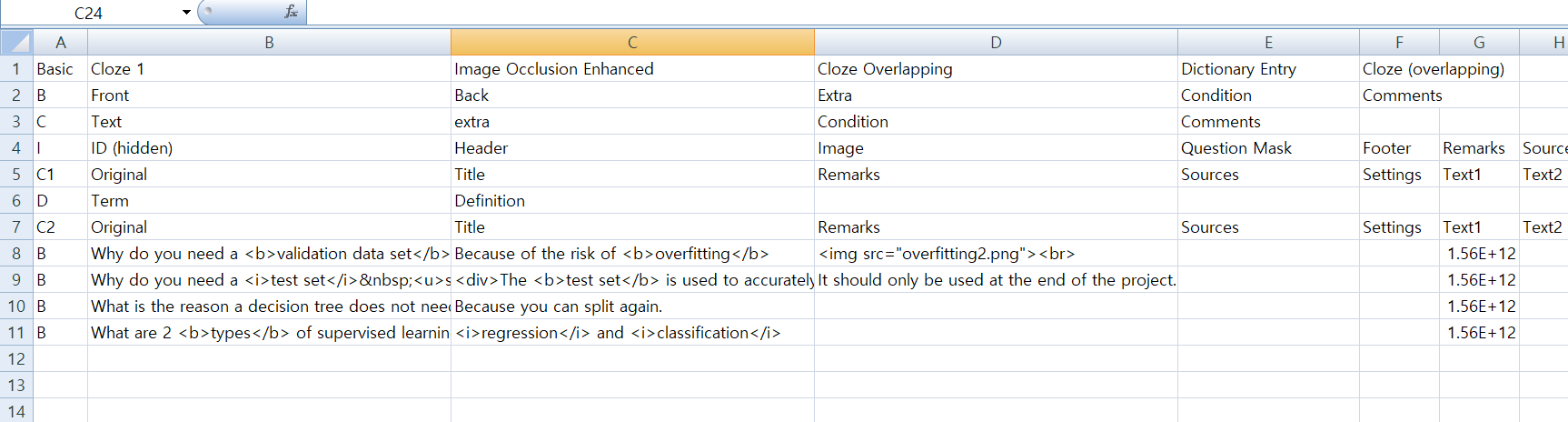 Obviously, you aren’t expected to type all the note type stuff. Intended use is to run ‘Anki -> Excel’ first, then edit / add notes on it.