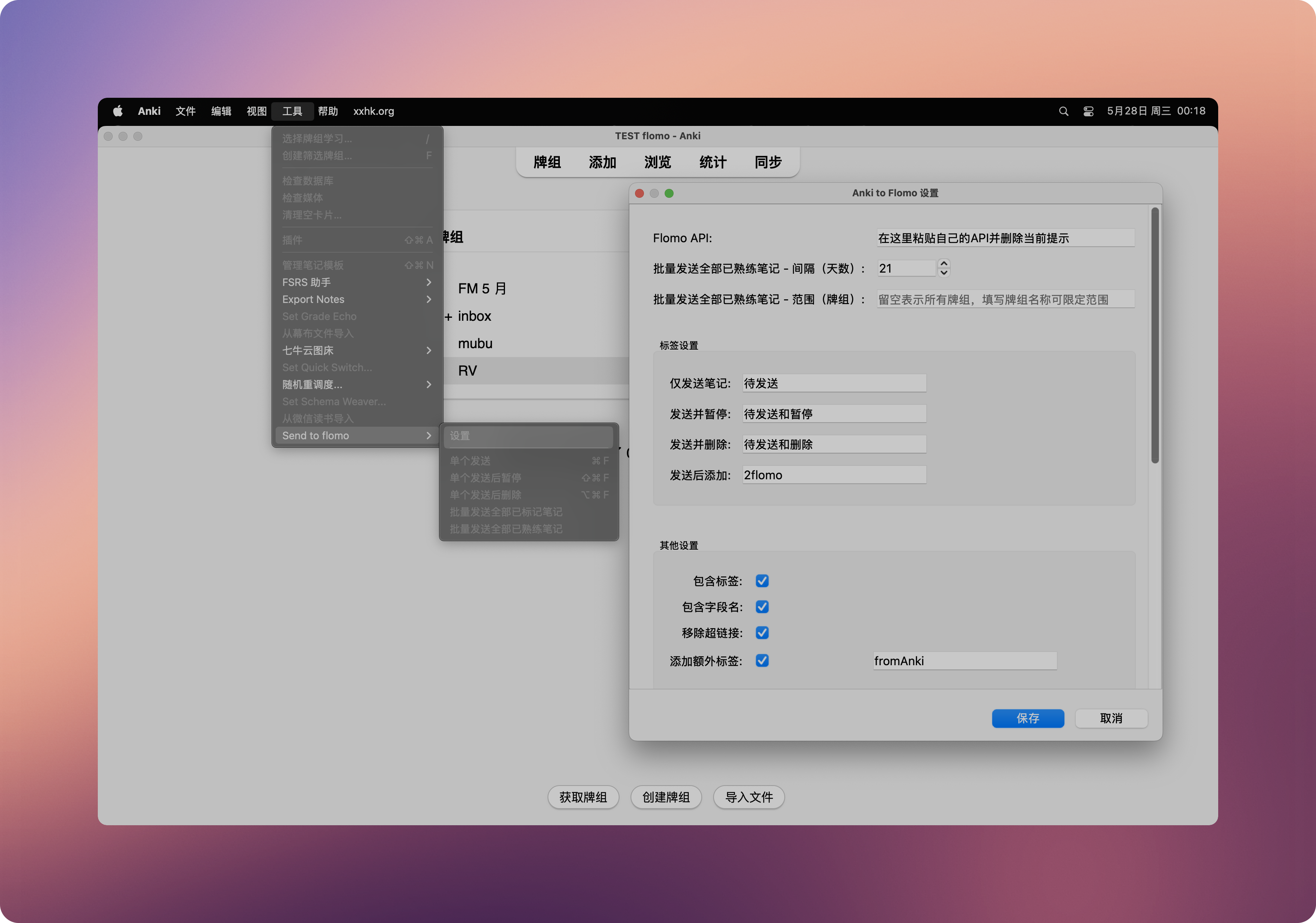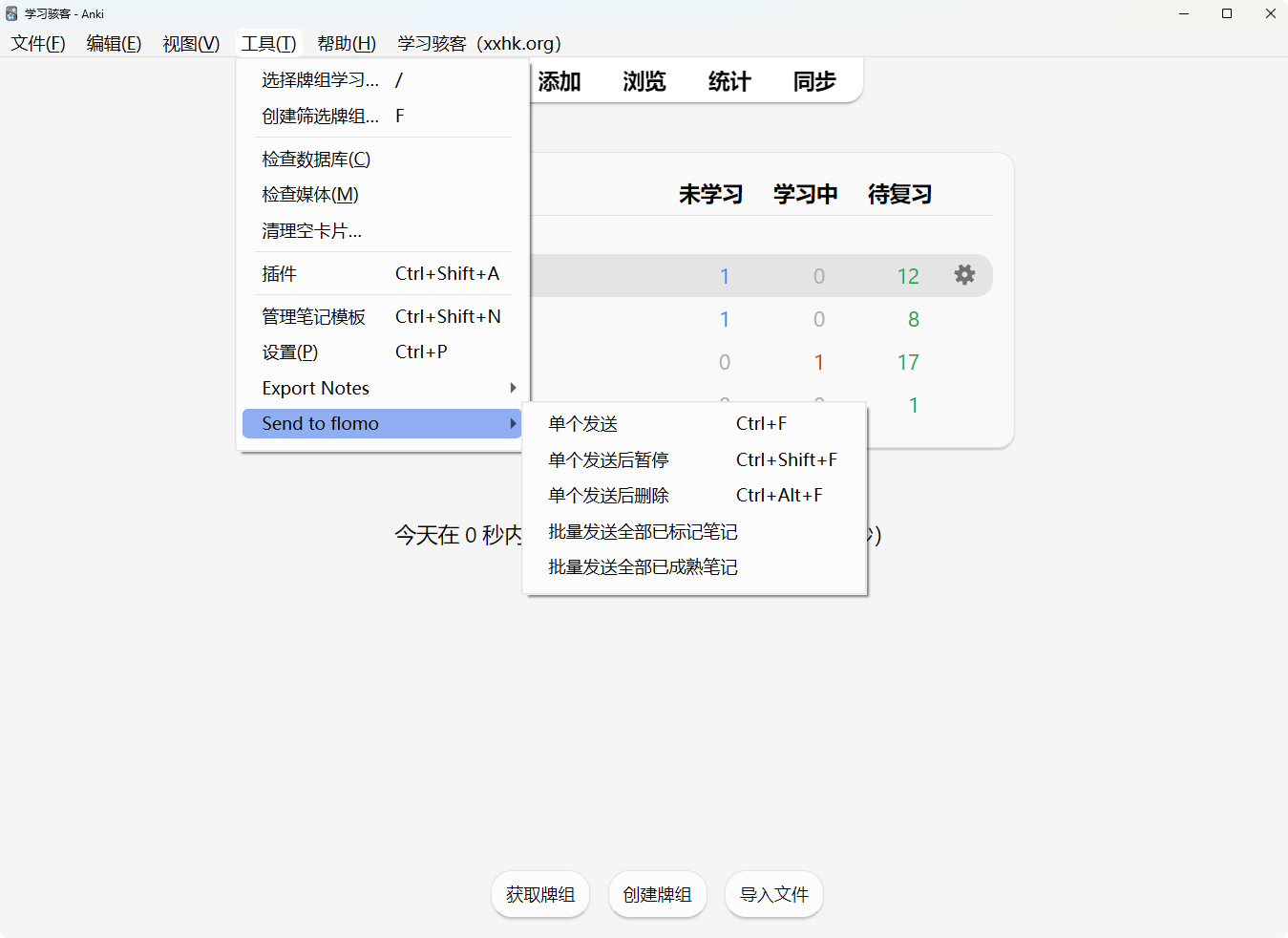 具体用法(偶尔需要科学上网):https://xxhk.org/anki-addon-send-to-flomo
