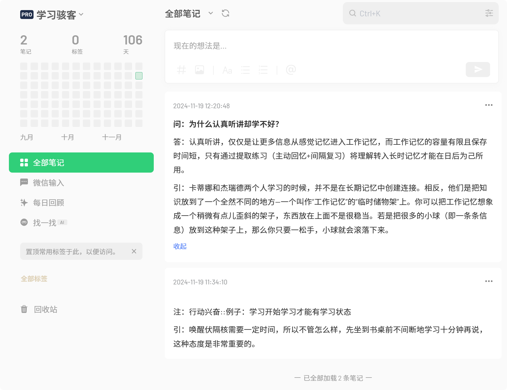 ⚡以下是“已熟练”的笔记,使用当前插件最简单的方法就是每天一键发送已熟练的笔记到 flomo 里。
