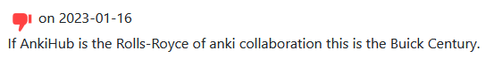 Regarding AnkiHub: I appreciate the support shown to our community. However, I’ve noticed some hostility towards AnkiHub with downvotes on their addon page. I know their developers personally and value their work. Let’s avoid hostility and downvotes, as it doesn’t reflect well on our community. Please, let’s maintain a positive and respectful environment. Healthy competition benefits us all. Please consider removing the downvotes and let’s showcase our community’s integrity.