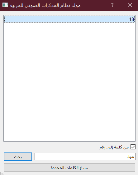 كما أن للإضافة أيقونة في محرر الملحوظات تفتح الواجهة مع تحديد النص المحدد حاليًا في المحرر والبحث عن كلمات مقابلة له (إذا كان يحتوي على أرقام)، أو تحويل كلمة إلى قيمتها العددية.