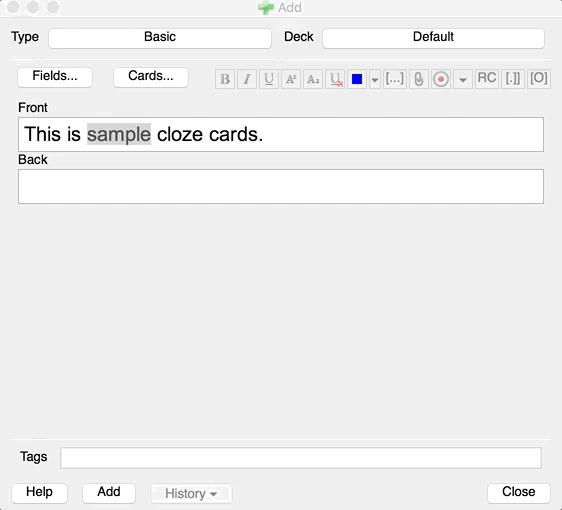 For your information, Automatic Basic to Cloe is a very good add-on, so use it well! Comment from author Please leave a feedback at https://github.com/trgkanki/basic2cloze/issues