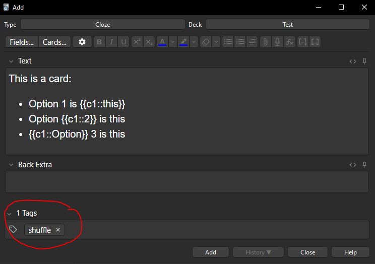 CloveShuffler is an addon for Anki that can shuffle your Clove answers/lines in your flashcards. This is to stop you from simply memorizing the position or order of the answers.