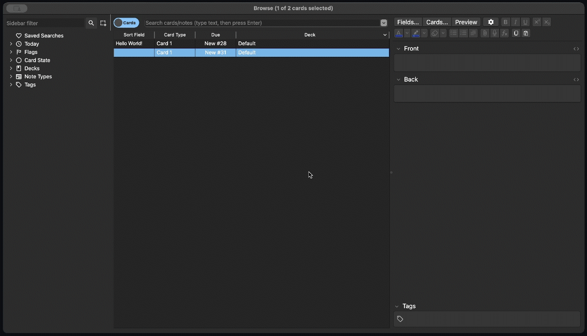 Demo Features Copy fields from the previous note of the same type. Option to copy tags. Configure which fields to copy per note type Easy setup via Tools → Copy Fields Usage