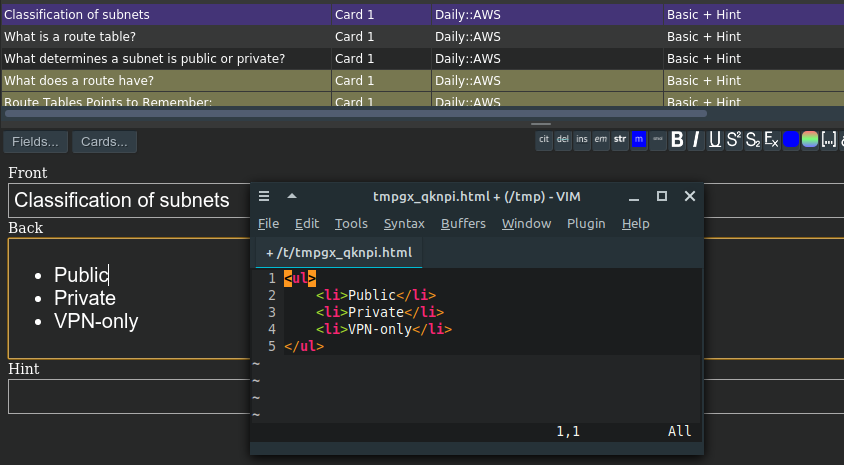 Launches Neovim as my external editor, which is what is configured, but when I exit the editor (and save the buffer) the changes are not reflected in the card editor.