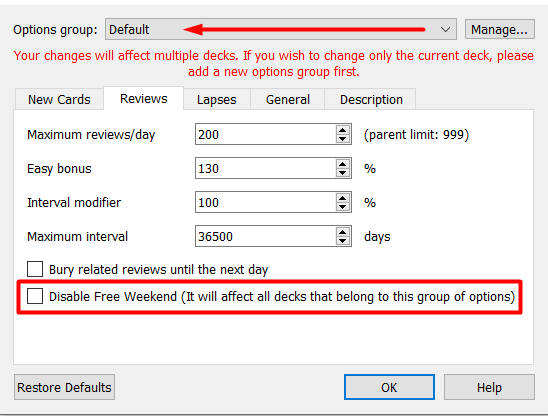About: Select Sunday if you do not want to study on this day or any other day of the week and this addon will select another day in the rescheduling. You will leave this day free for other tasks or rest.