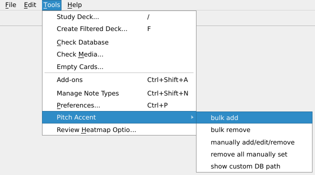 ① Tools → Pitch Accent → bulk add
