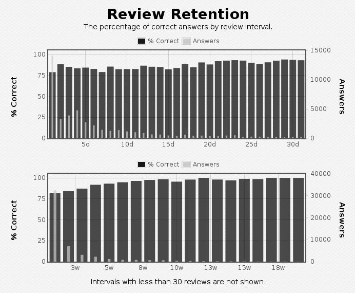 - Added an optional graph showing review retention for long intervals. It can be enabled with the hide_review_month option.