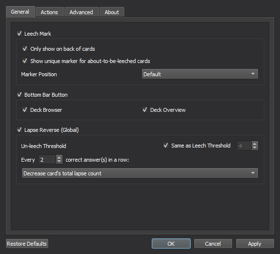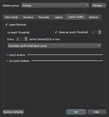Deck Options - Custom settings, per-deck, for updating lapses and performing custom leech/un-leech actions.