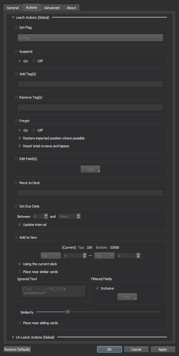 Also, the Leech action to move the cards automatically to a seperate deck does nothing for me, maybe I did something wrong but ticking the "move to deck" option and selecting the deck does not suffice apperently.