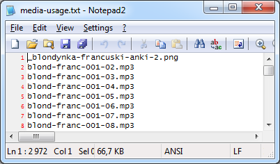 Sample media usage dump file contents