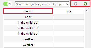 Then the browser window will be modified a bit. There will be a new column (Search) and two arrow buttons.