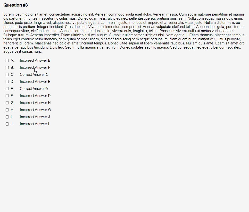 Good day, is it possible to remove the letters(A. B. C.) beside the choices? or make a tutorial/instructions on how to do it personally. Thank you in advance. Comment from author Thank you for your feedback. Yes, it is possible. Let me add it into the configuration to allow disable the letters. I will include this update in upcoming release.
