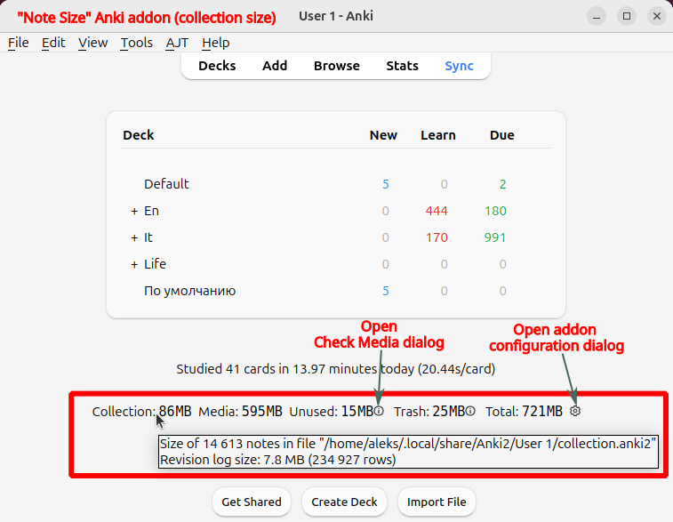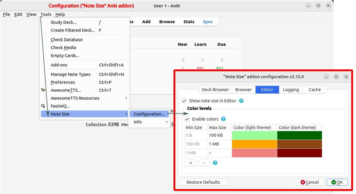 Nếu hệ thống Anki của bạn ngày càng chậm chạp hoặc bạn gặp khó khăn khi đồng bộ hóa (Sync) dữ liệu lên AnkiWeb do bị quá tải dung lượng, Note Size chính là một addon Anki cứu cánh mà bạn đang tìm kiếm. Nó cung cấp cho bạn cái nhìn chi tiết nhất về dung lượng lưu trữ của từng Note (thẻ), Deck (bộ bài) và cả bộ sưu tập (Collection).