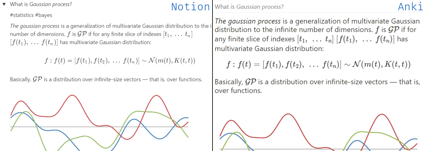 - As for now, LaTeX and plain text cannot be used in the same cloze: Notion puts them in separate code tags which leads to the creation of two cloze blocks.
