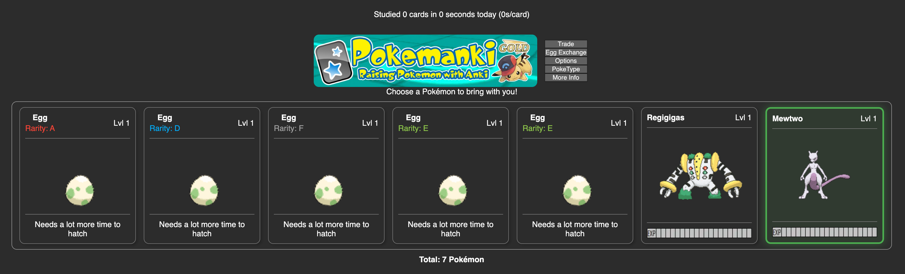 Eggs are awarded based on cards completed. Every 300 cards will net you 1 egg! Eggs come in different rarity tiers, F through S. You can exchange 5 eggs of one rarity tier for 1 egg of a higher rarity. You can access the egg exchange from the deck overview menu