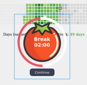 Based on the Pomodoro method, where (classically) you work for 25 min, then take a 5 min break. You can see a progress bar at the top and you can set your own times as desired.