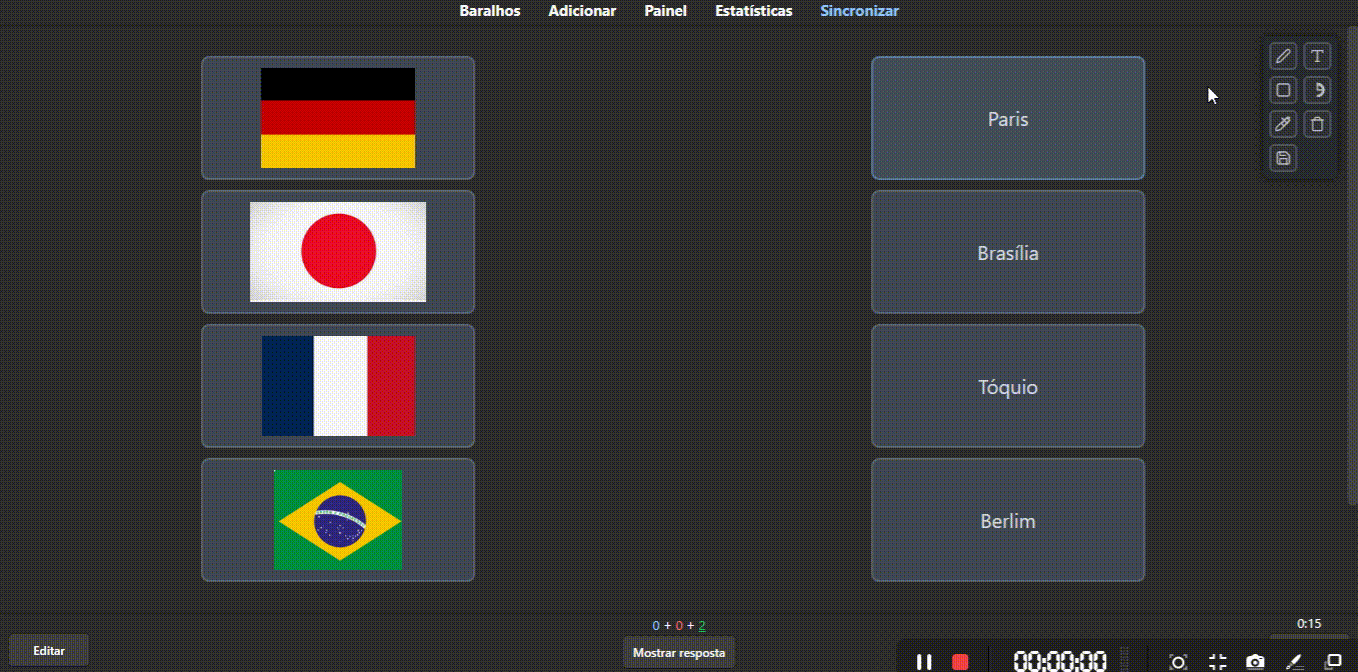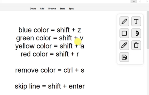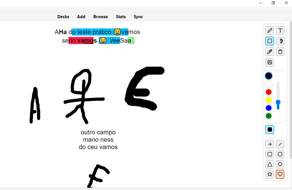 Principais Funcionalidades Edição de Texto Direta: Clique em qualquer campo para começar a editar instantaneamente. As alterações são salvas automaticamente quando você clica fora do campo ou pressiona Enter. Cancele a edição a qualquer momento pressionando a tecla Esc. Navegue entre os campos editáveis usando o atalho Ctrl + D. Cole imagens diretamente da sua área de transferência para dentro dos campos. Destaques e Formatação Rápida: Selecione um texto e use atalhos para destacá-lo com cores: Shift + A para Amarelo Shift + V para Verde Shift + R para Vermelho Shift + Z para Azul Remova qualquer destaque do texto selecionado com Ctrl + S. Ferramenta de Desenho Integrada: Acesse uma paleta de ferramentas flutuante para desenhar sobre seus cartões. Ferramentas Disponíveis: Lápis, Texto, Formas (seta, linha, quadrado, círculo, etc.), Preenchimento (balde de tinta) e Borracha. Personalize a cor e a espessura do traço. Desenhe linhas retas perfeitas segurando a tecla Shift. Desfaça (Ctrl + Z) e refaça (Ctrl + Y) suas ações de desenho. Salvar Desenho: Clique no ícone de salvar, selecione a área do seu desenho, e ele será salvo como uma imagem diretamente no campo correspondente. Esconda ou mostre a paleta de ferramentas com o atalho Ctrl + H. Como Usar Durante a revisão de um cartão, simplesmente clique no texto que deseja alterar. Para usar a ferramenta de desenho, ative uma das ferramentas na paleta no canto superior direito e comece a desenhar. Quando terminar, clique no ícone de salvar, selecione a área desejada, e seu desenho será permanentemente adicionado ao cartão.