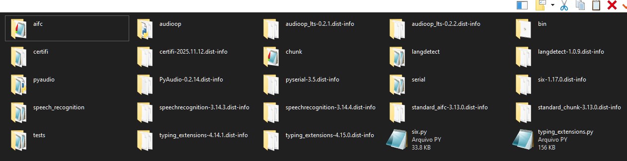 Problema com o PyAudio: Mesmo problema - binário do Windows. A solução foi instalar o portaudio e recompilar o PyAudio para macOS: brew install portaudio /opt/homebrew/bin/python3.13 -m pip install pyaudio -t “vendor” —upgrade —force-reinstall