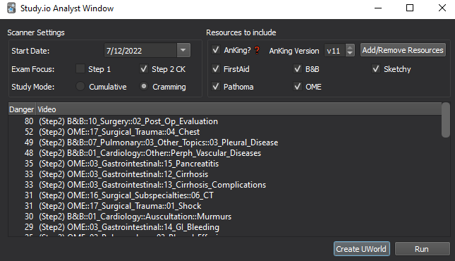 - Create UWorld practice blocks based on questions you’ve missed recently (AnKing only)