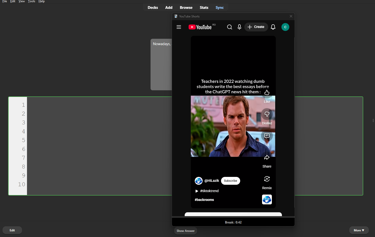 In Tools, go down and click on YouTube Shorts settings, and there you have two options. The first is to show a YouTube Short after the first card in a deck is reviewed as Good or Easy, and the second is to show YouTube Shorts after a number of Good and Easy card reviews. Once you meet the requirements for one of these two, a YouTube Short window will appear for the next 70 seconds, and after the timer ends, it closes.